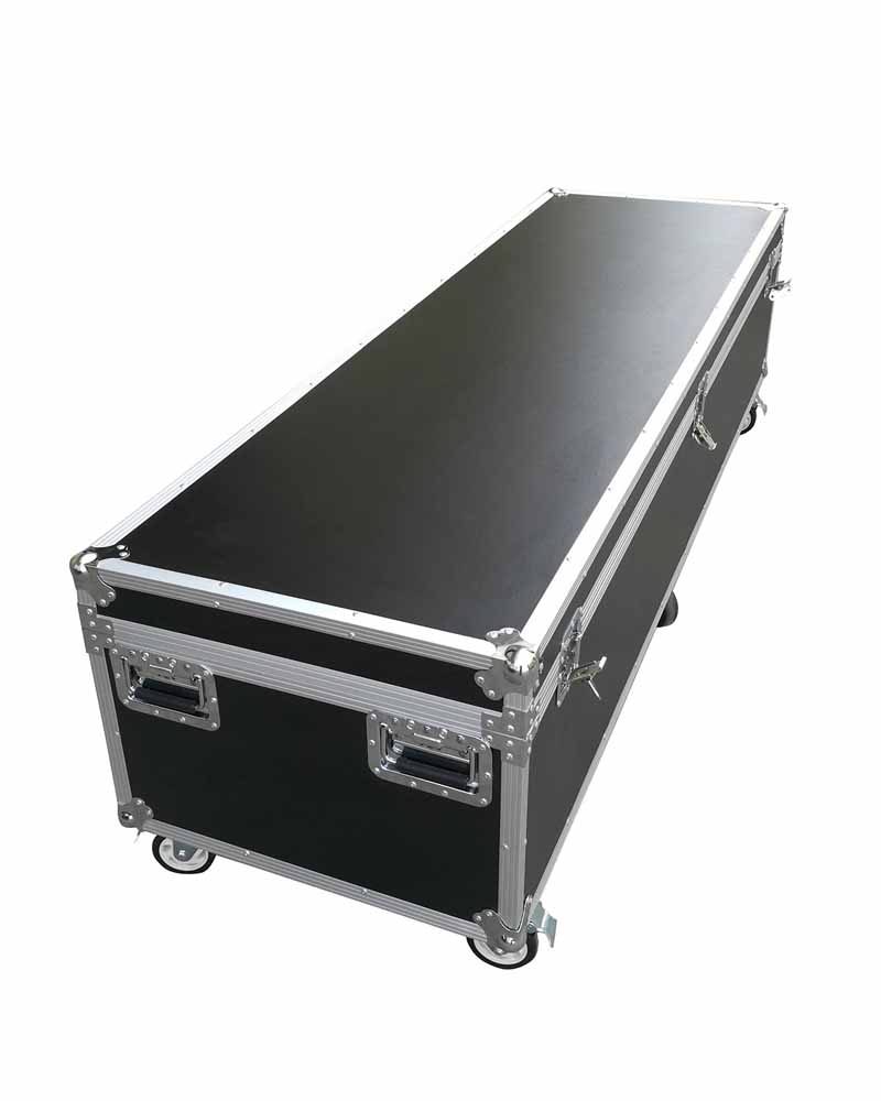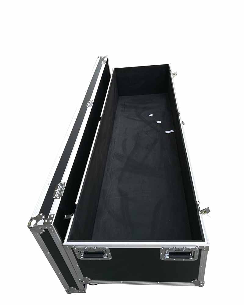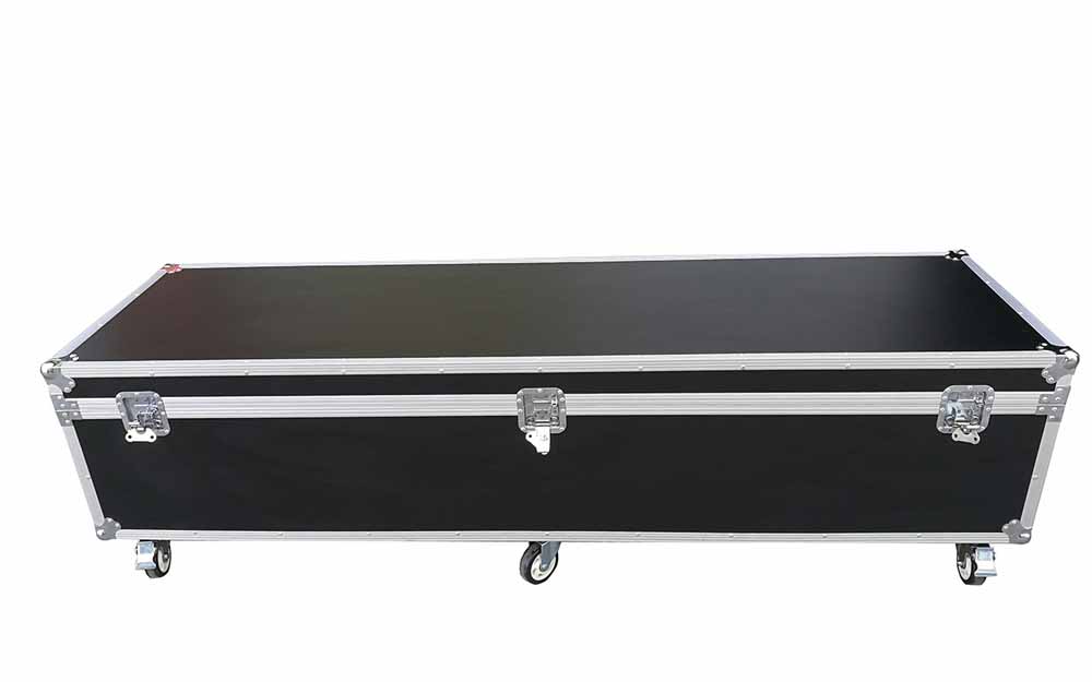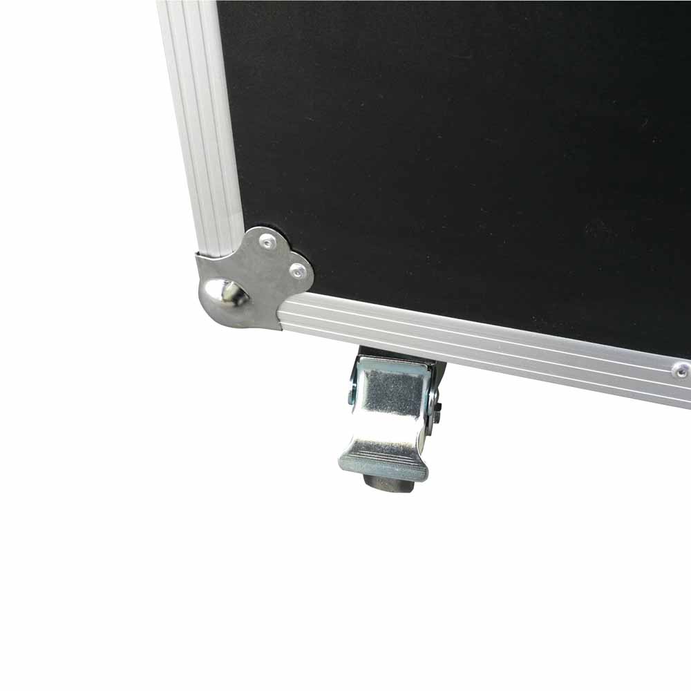 The big aluminum transport case is made from a durable aluminum frame with a black fireproof panel, it is more than 180cm long. The four handles and butterfly locks make this design case very easy to lock. Of course, the wheels make it very easy for move and carry. Don’t worry about transport as the wheels can be braked.