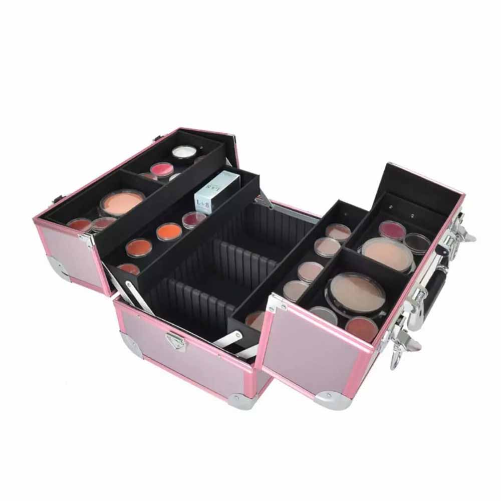 Reliable Protection & Organized Storage: Crafted with sturdy aluminum frames and impact-resistant panels, the case shields cosmetics from bumps, spills, and dust during transit or daily use. The interior features multi-layer removable trays and divided compartments, keeping lipsticks, eyeshadows, brushes, foundation bottles, and skincare essentials neatly sorted and easily accessible. A secure key lock adds extra safety for valuable beauty products.