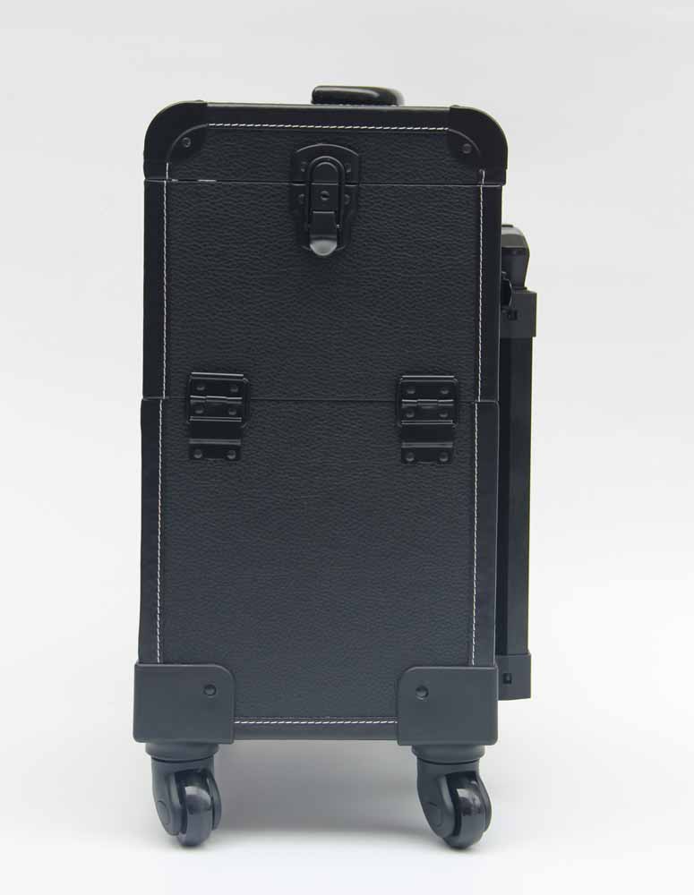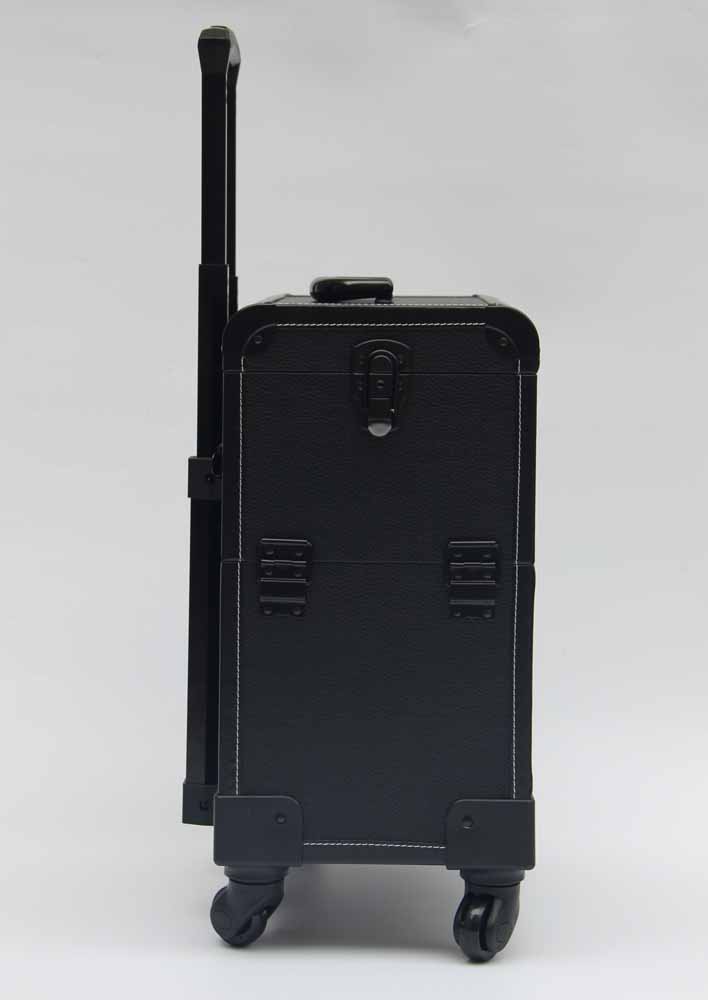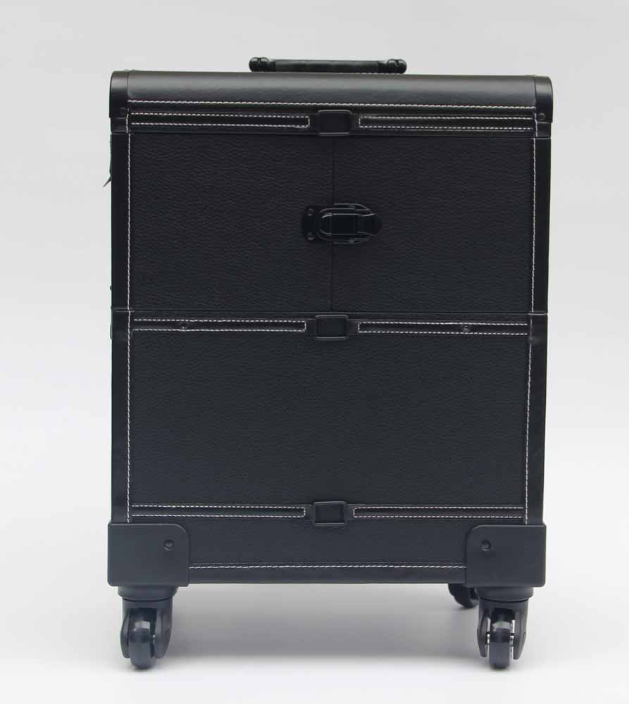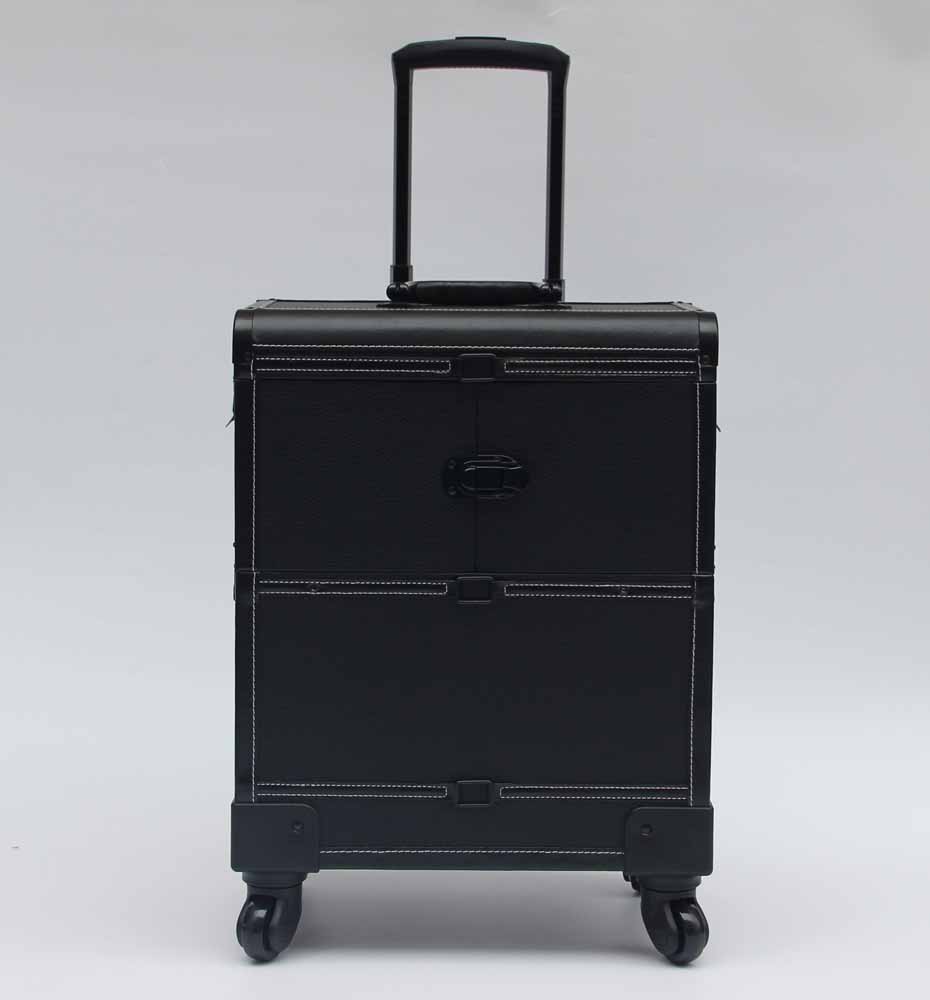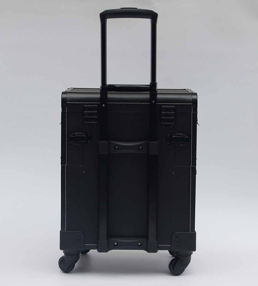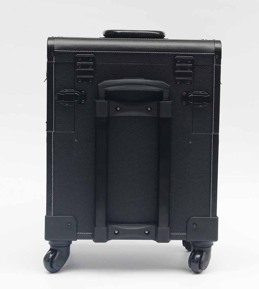 Black Leather Makeup Trolley Case With Wheels