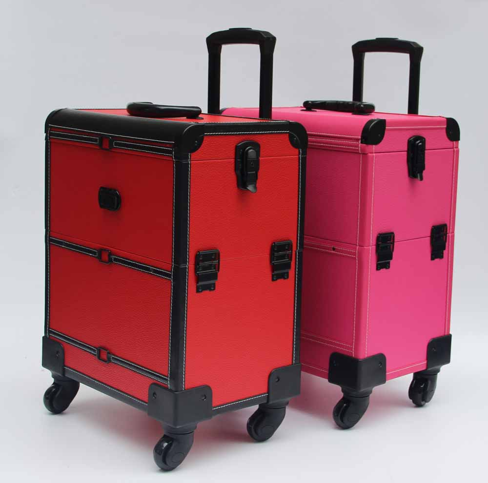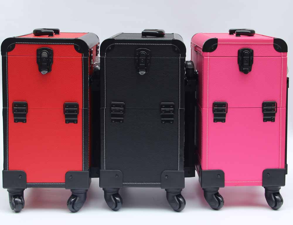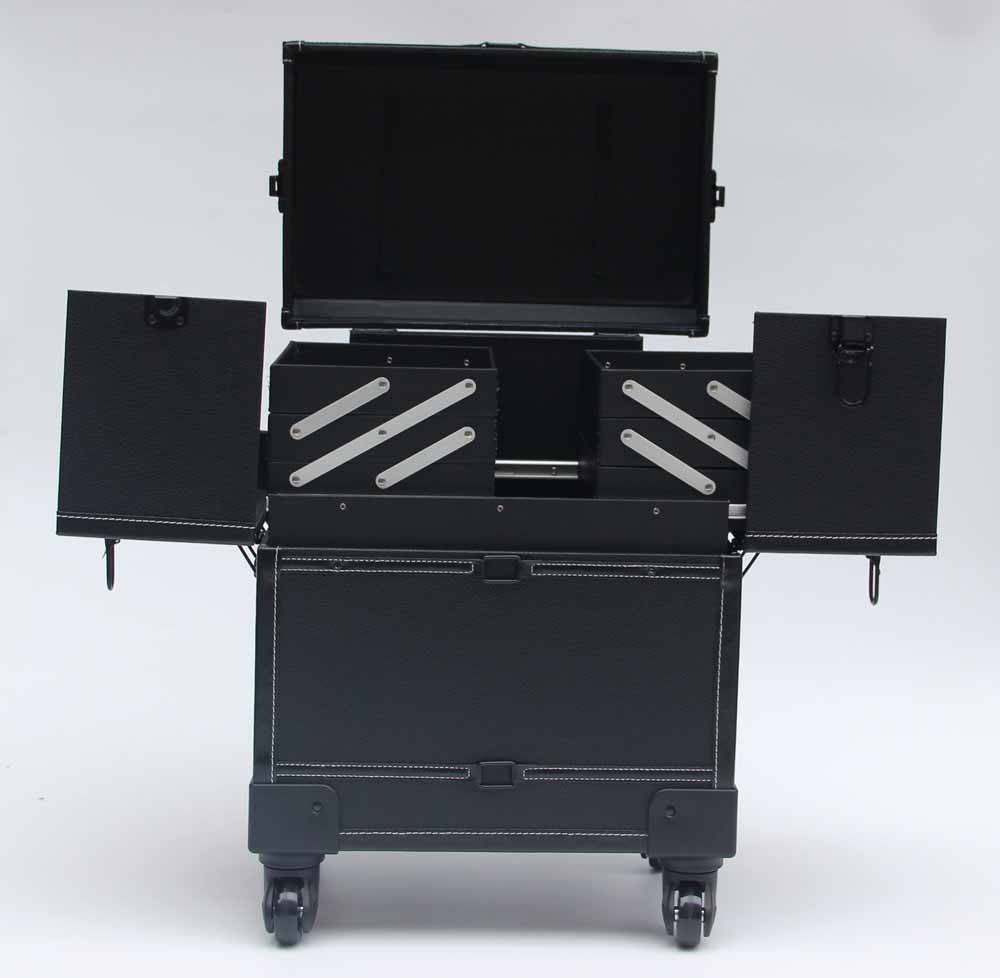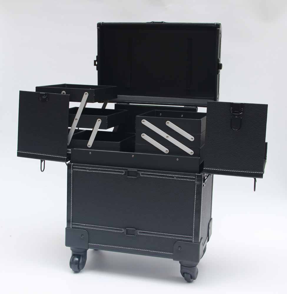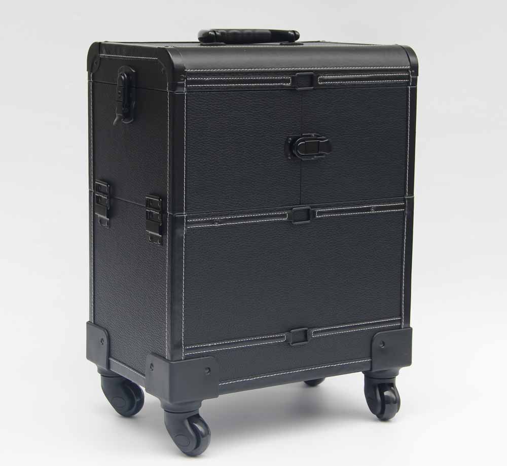 Black Leather Makeup Trolley Case With Wheels