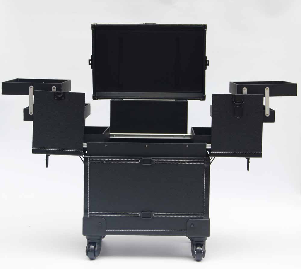 Black leather makeup trolley case with wheels