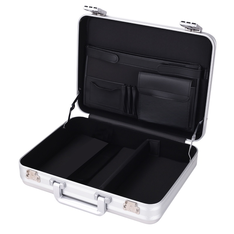 MSAC CO., LTD is a manufacturer of aluminum briefcases, Such aluminum instrument case blend form and function with user-centric features. The interior boasts multi-layered organization: dedicated pockets for 13–16 inch laptops, file dividers, pen slots, and business card holders keep essentials accessible or other interior for instruments . For high-value items like test equipment or confidential documents, detachable EVA foam inserts can be custom-die or CNC middling process to cut to fit specific shapes, preventing movement during transport . An ergonomic metal handle ensures comfortable carrying, even when loaded with heavy materials—a favorite among business elites who need to haul laptops and files daily.