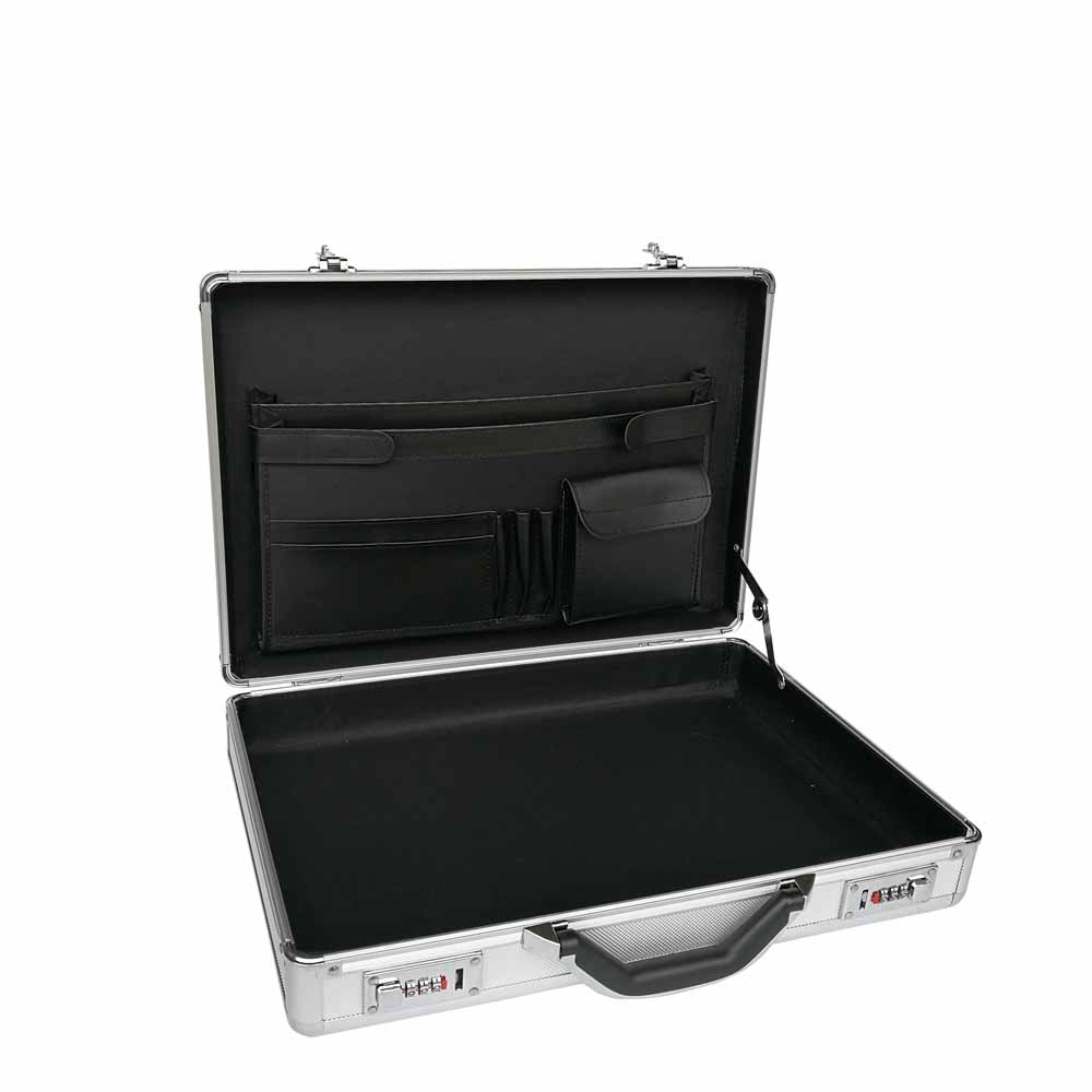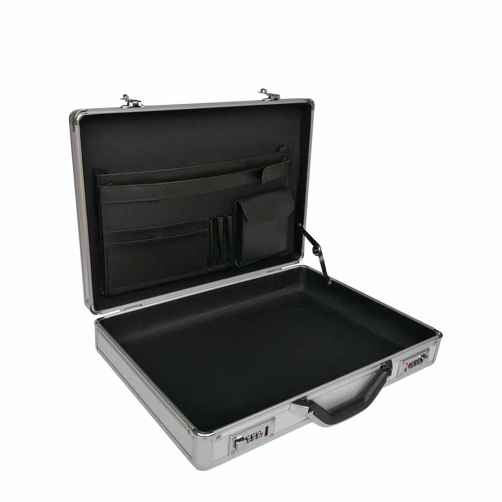 You never image that how beautiful this aluminum briefcase is, very comfortable handle for carry. Inside custom made brief pocket to storage office items, pens, books, calculator, also with your notebook.