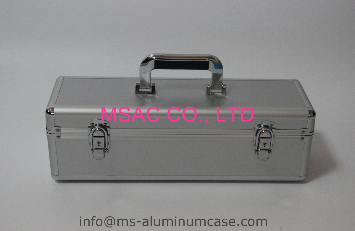The case has one plastic handle with 2 locks, round corner design, easy for carry. Our Empty Aluminum Tool Case has high quality standards.