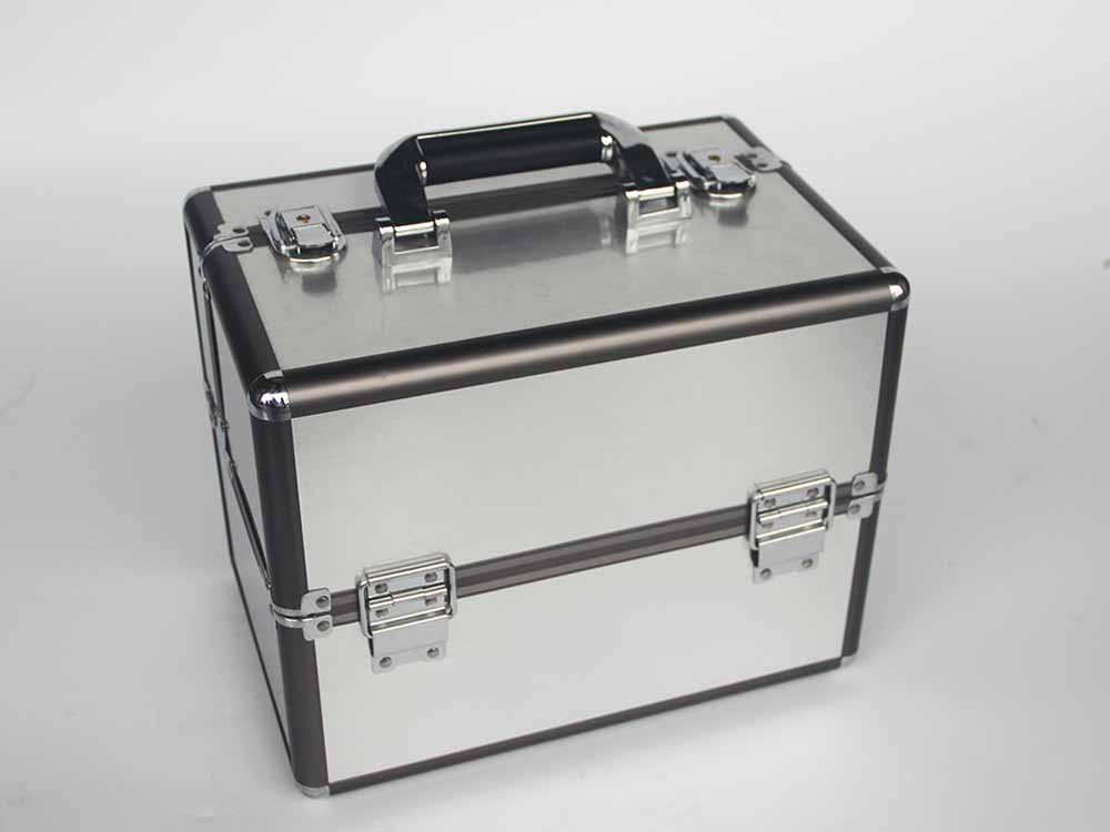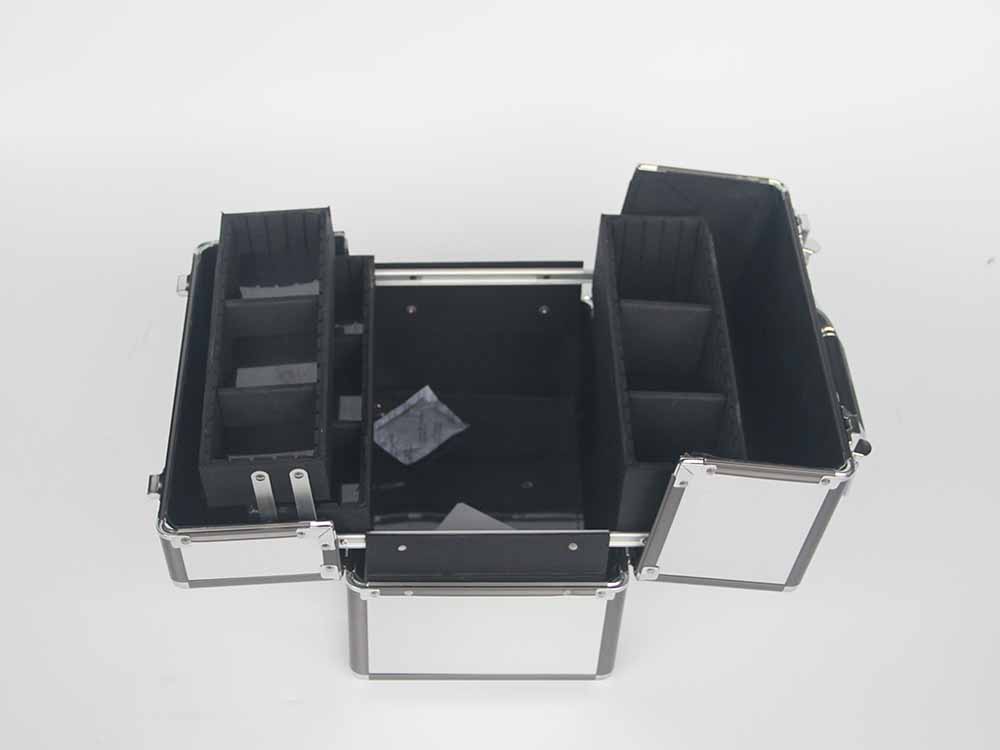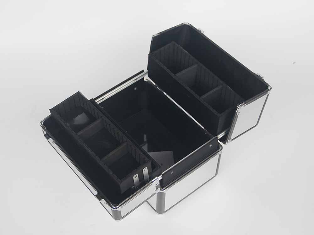 Double opened aluminum beauty case with four plastic trays inside case. Large capacity in the bottom to storge cosmetics and tools. It is wide usage for carry and storage cosmetic and beauty items.