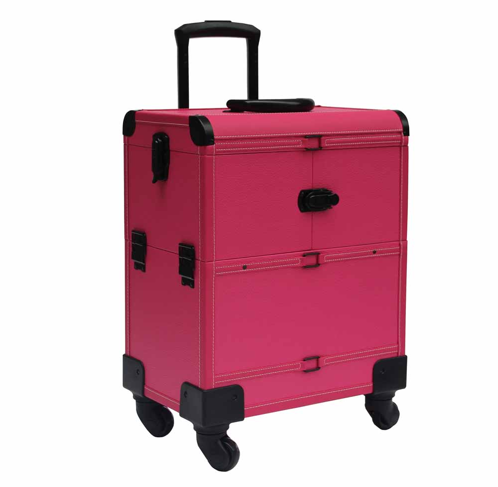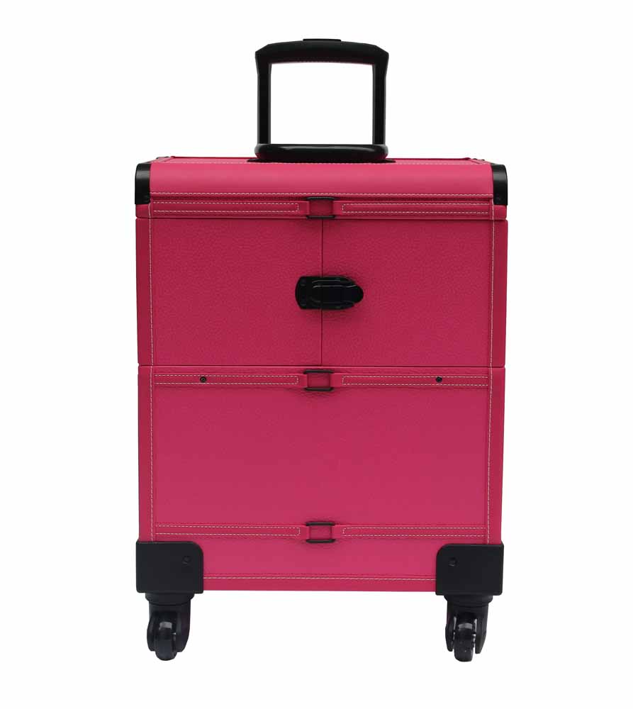 This pink trolley case is top grade quality, end user can transport or carry this case go any where, It is easy for carry.Makeup case is light weight, durable.