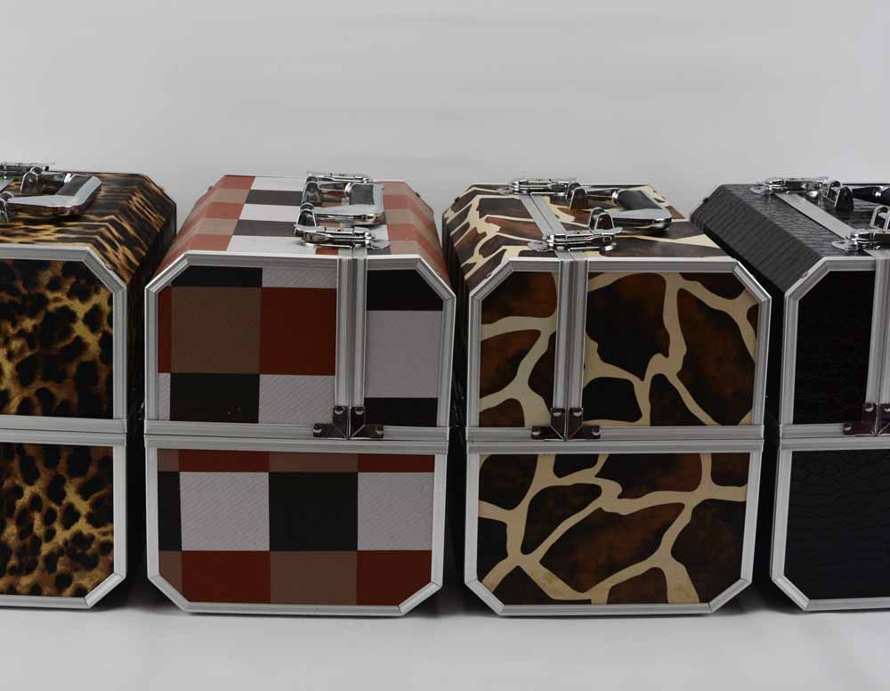 1. This PU leather aluminum cosmetic train box with multi color design, portable cosmetic vanity case with size 300*220*245mm. Multi color looks beautiful and fashion. Irregular shape design is different and special.