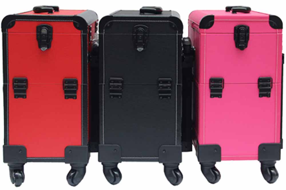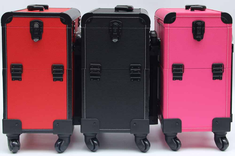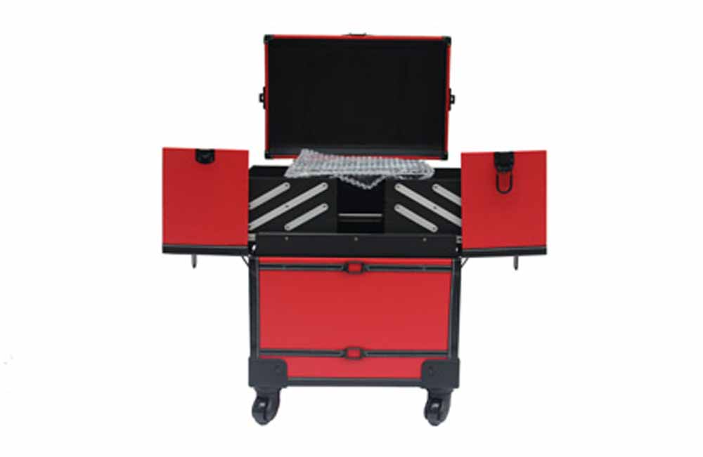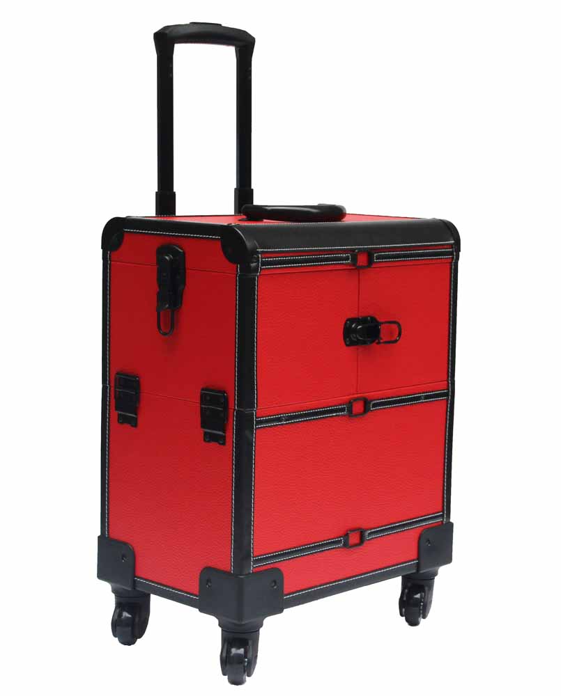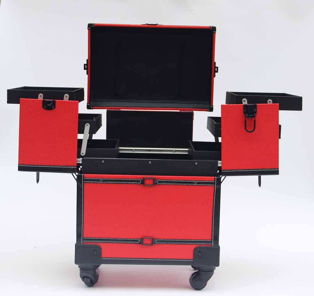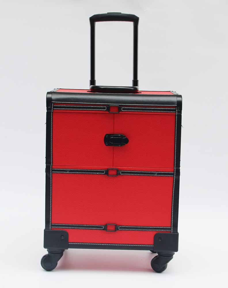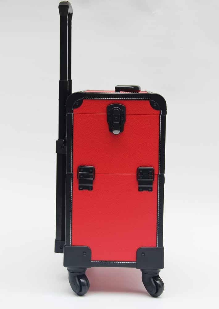 This red-black trolley case is top grade quality, end user can transport or carry this case go any where, It is easy for carry.Makeup case is light weight, durable.