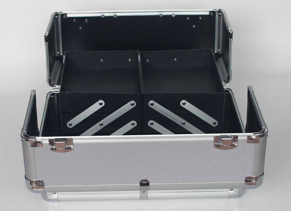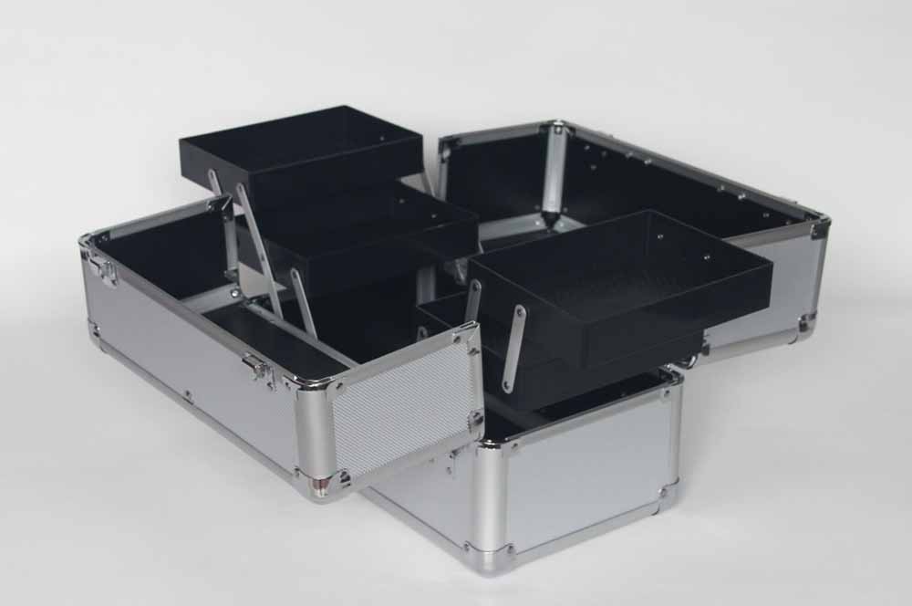 Silver Aluminum Cosmetic Train Case With Trays
